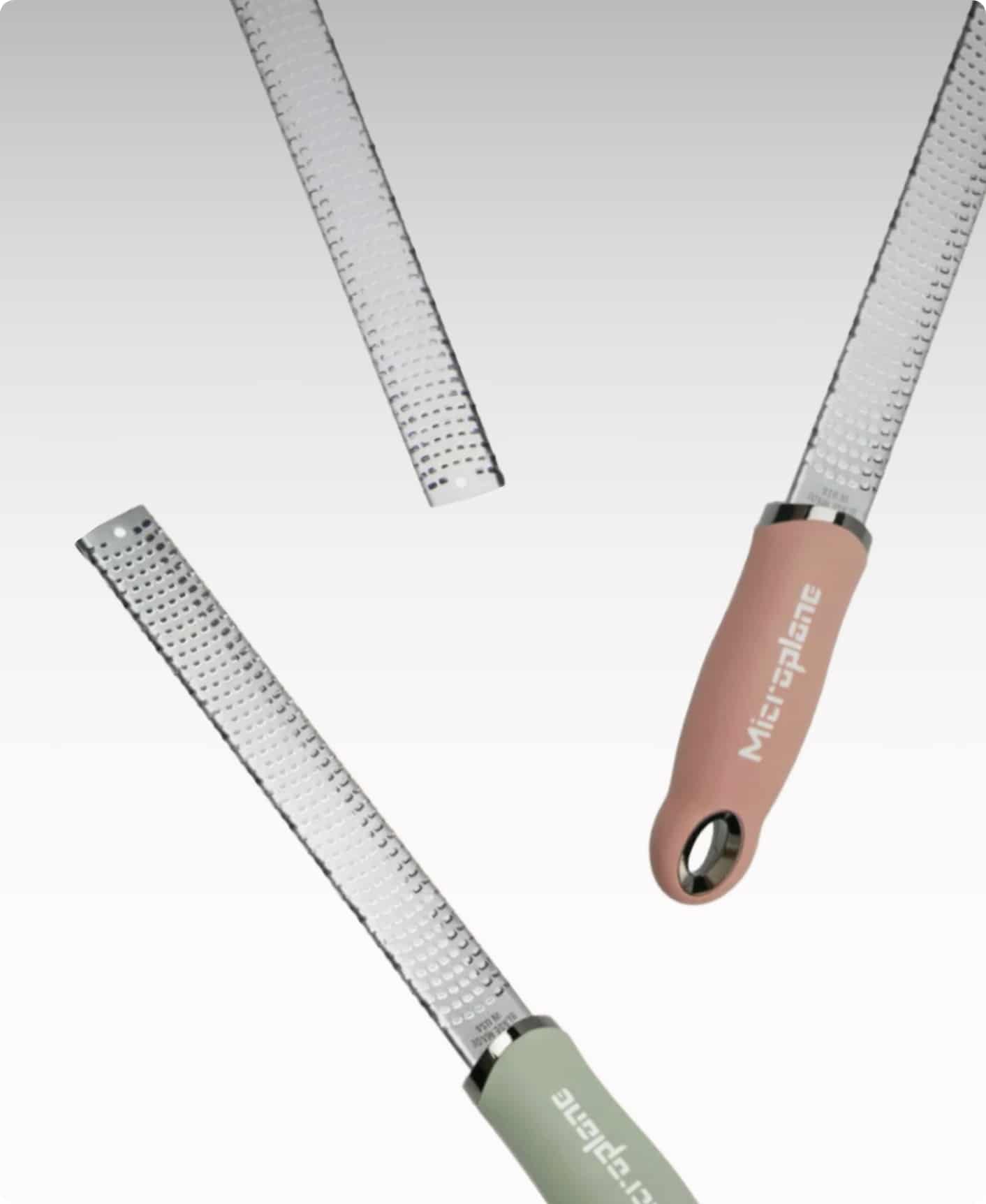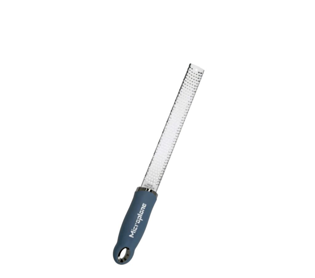 La râpe Microplane n’a pas d’équivalent : une lame ultra-affûtée fabriquée aux États-Unis par photochimie, qui râpe finement sans écraser et préserve les arômes. Son manche doux offre une prise confortable. Polyvalente, elle passe des agrumes au parmesan, du gingembre au chocolat sans jamais accrocher. Petit plus : elle se nettoie avec un filet d’eau, ne craint pas l’éponge et sèche en quelques minutes.