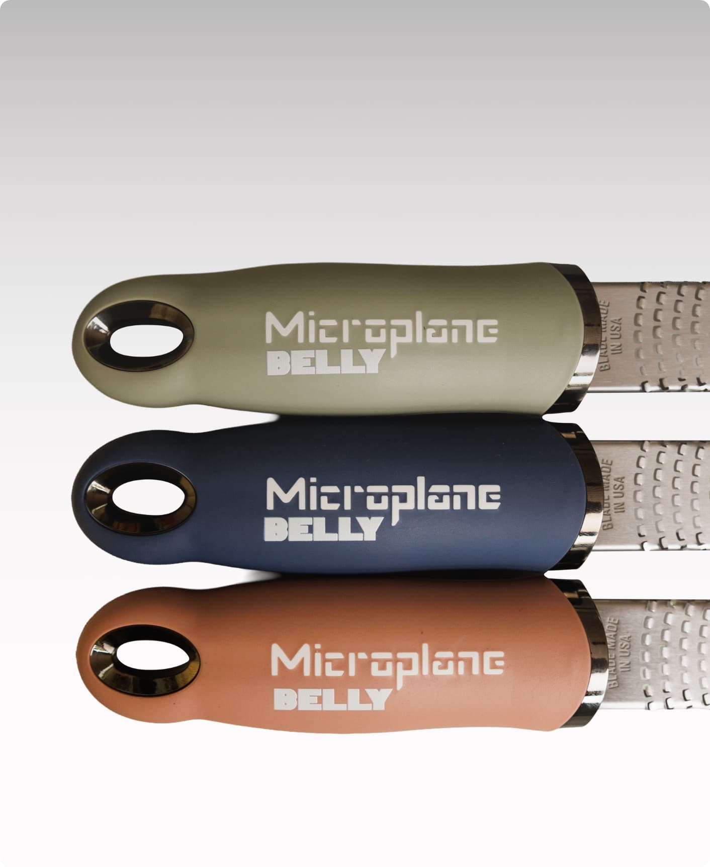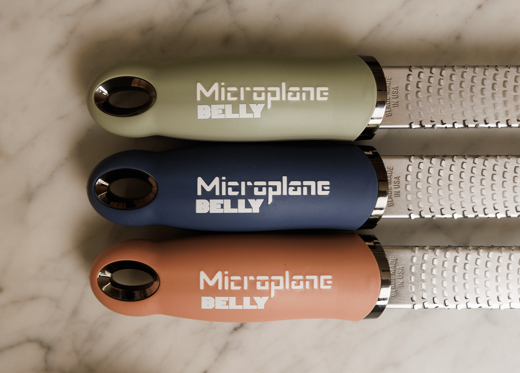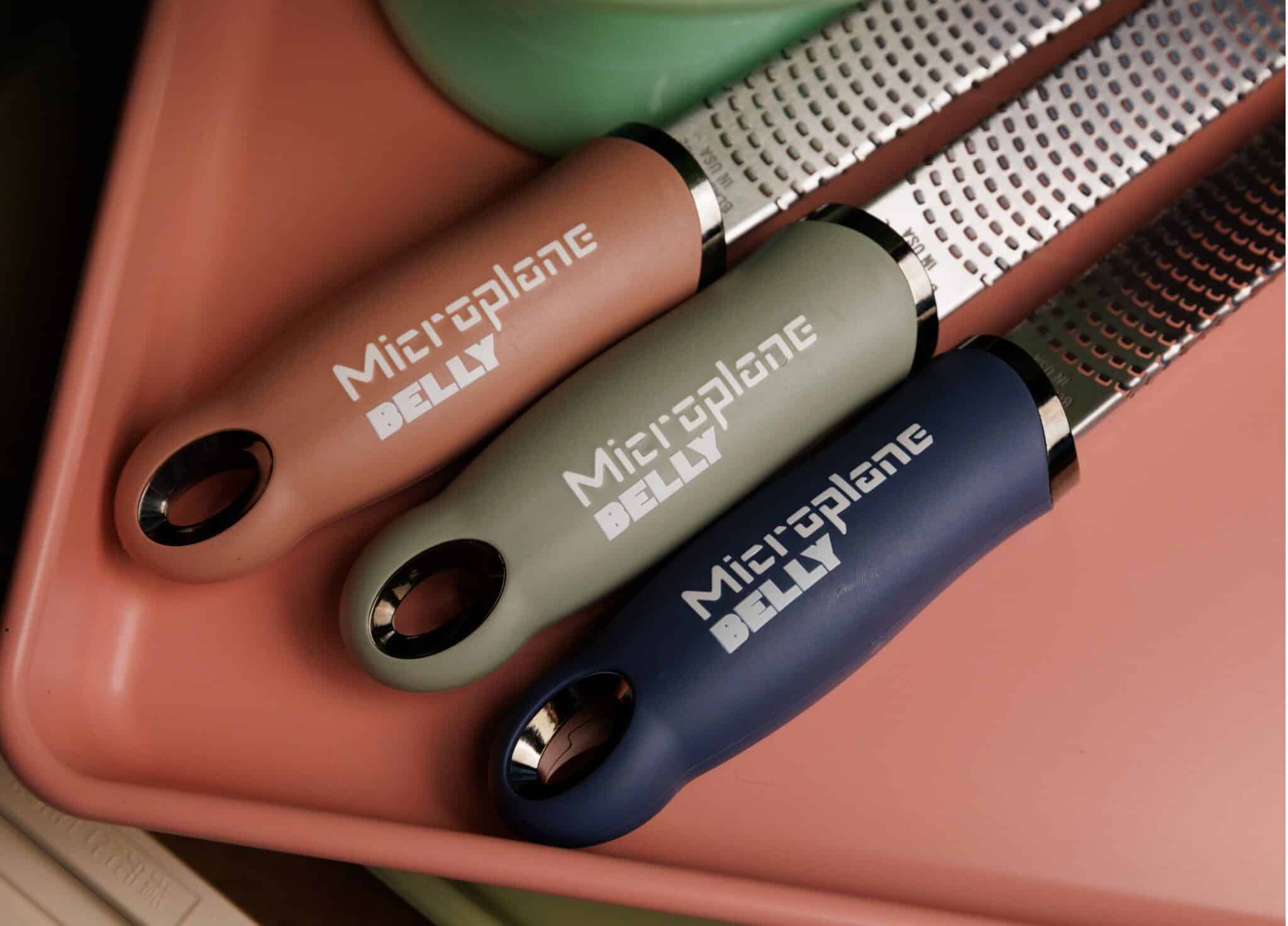 Belly et Microplane se sont associés pour décliner le produit iconique en 3 couleurs : Bouton de Rose, Vert Sauge, Bleu Denim.