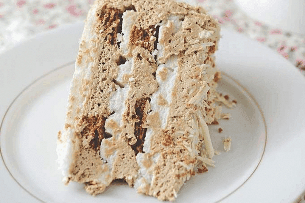 Déposez le grand rectangle de meringue sur un plat de service, recouvrez-le d’un peu de chantilly aux marrons, puis placez le rectangle de meringue de taille moyenne dessus, étalez un peu de chantilly aux marrons, placez le dernier rectangle de meringue, puis couvrez le tout avec le reste de chantilly aux marrons.