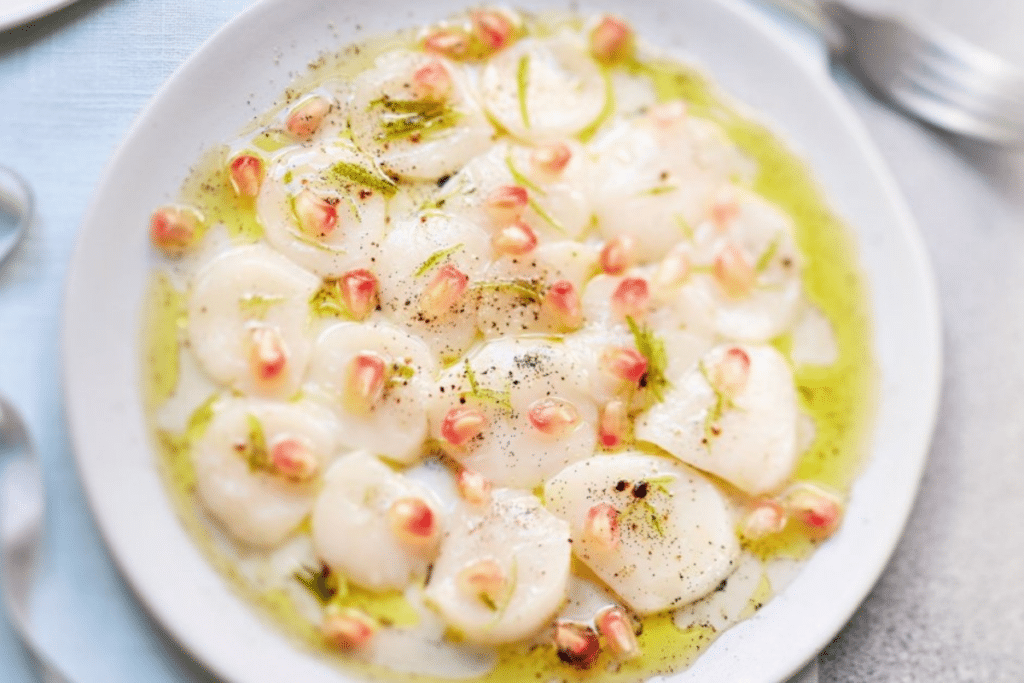 Saint-jacques + vanille + grenade + citron = un mélange classique en Polynésie Française juste sublime, car chaque ingrédient s’équilibre à la perfection. L’iode s’adoucit grâce à la rondeur de l’huile à la vanille, le citron et la grenade apporte du peps… C’est l’incarnation de la délicatesse en une entrée.
