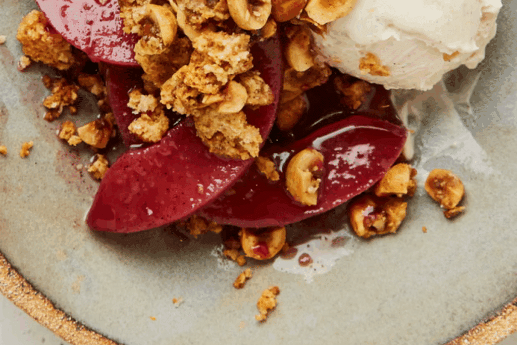 Un cheesecake déstructuré aux coings, avec un crumble aux amaretti et aux noisettes signé Yotam Ottolenghi. Rien que ça, ce cheesecake fait saliver… : avec des coings fondants cuits longuement dans du vin et des agrumes, un fromage de chèvre ultra crémeux parfumé aux épices et un crumble doré au beurre noisette pour apporter du croquant. Le tout est servi en couches gourmandes dans un bol, avec le sirop caramélisé des coings qui vient napper l’ensemble.