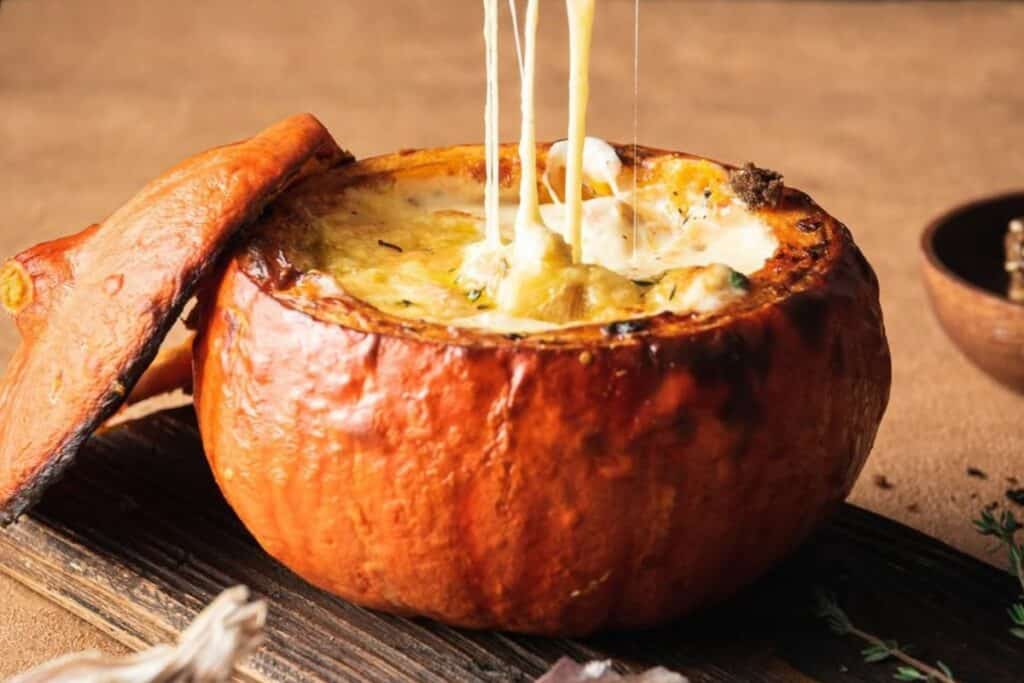 C’est l’une des recettes les plus réconfortantes de l’automne : un potimarron farci au four, accompagné de pommes grenailles rôties et d’ail confit. Il se prête parfaitement bien pour être partagé en famille ou entre amis. Le petit plus ? Il est ultra simple à préparer : une histoire d’assemblage d’ingrédients et de patience pendant la cuisson. Le résultat est sans appel, les avis positifs sont unanimes !